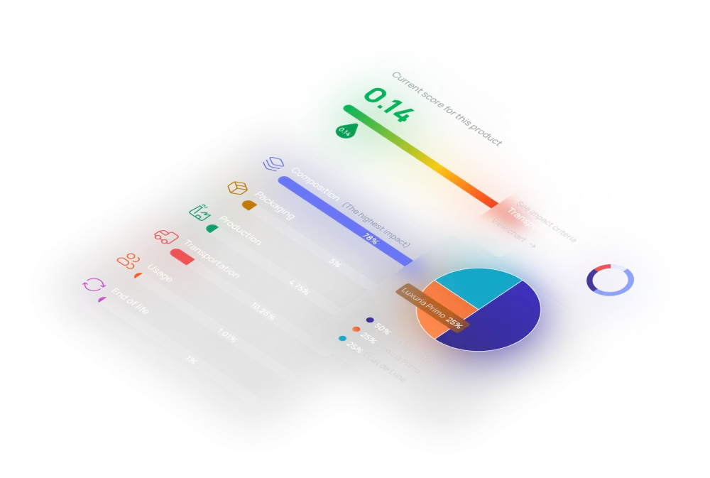 Generate an Eco Score and get real-time measurements on 16 Product Environmental Footprint indicators (PEF).